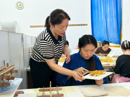 在"沾金捻子"与"打金开子"环节,达人用特制乌金纸包裹金片,通过上万次捶打使金箔延展至至薄状态,最具挑战的"打了戏"工序中,达人在工匠指导下挥动特制锤具,体验将金箔捶打至0.1微米薄如蝉翼的极致工艺。当金箔在"出具"工序中如蝶翼般展开时,所有参与者无不惊叹于传统技艺的精妙。最后的"切金箔"环节,达人手持竹刀在皮盘上轻划,将金箔裁剪成9.33厘米见方的标准尺寸,体验"薄如蝉翼、柔若轻纱"的触感。企业还特别设置了"贴金"体验区,让达人学习如何用手法抓取金箔,在器物表面完成贴金工艺,直观感受金箔"色泽纯正、经久不褪"的特质。