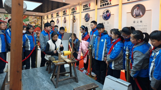 孩子们仰着脑袋,盯着展柜里比发丝还轻的金箔——原来故宫太和殿的鎏金瓦当、敦煌壁画的鎏金佛像,都藏着南京金箔的温度。“比纸还薄的金箔,居然能贴满一座宫殿?”有同学瞪圆眼睛,非遗的“神奇”,先在心里落了根。