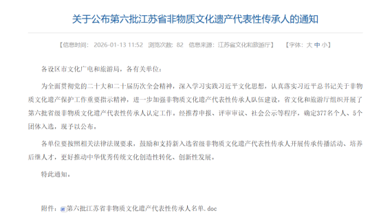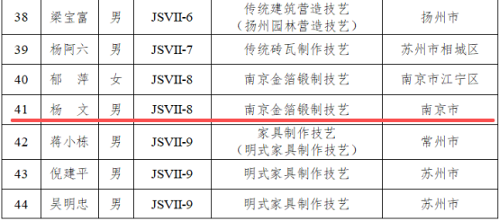 近日,经省文化和旅游厅组织开展推荐申报、评审审议、社会公示等严格程序,南京金线金箔总厂杨文成功入选第六批省级非物质文化遗产代表性传承人,传承项目为南京金箔锻制技艺。