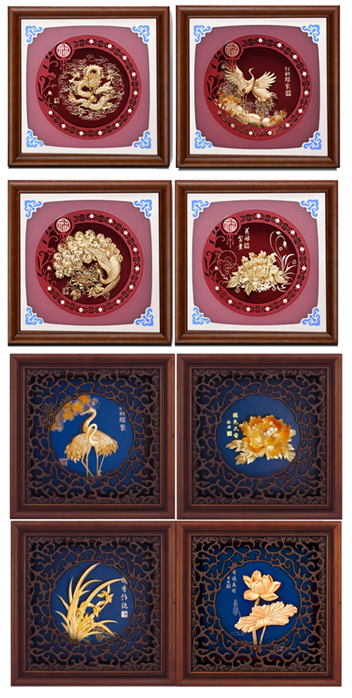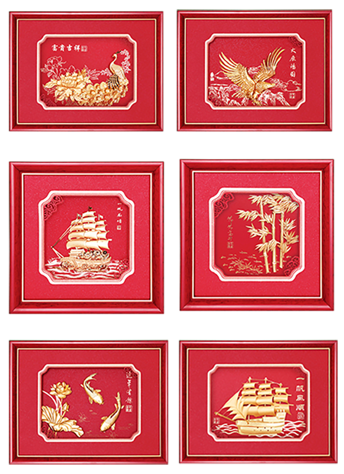 多样款式:金箔框画拥有多种款式,包括现代简约、中式传统等。消费者可以根据自己的喜好和家居风格选择合适的款式。
